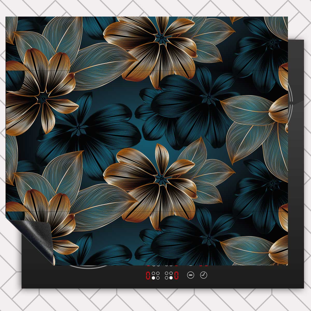 Inductie beschermer - Gouden bloemen