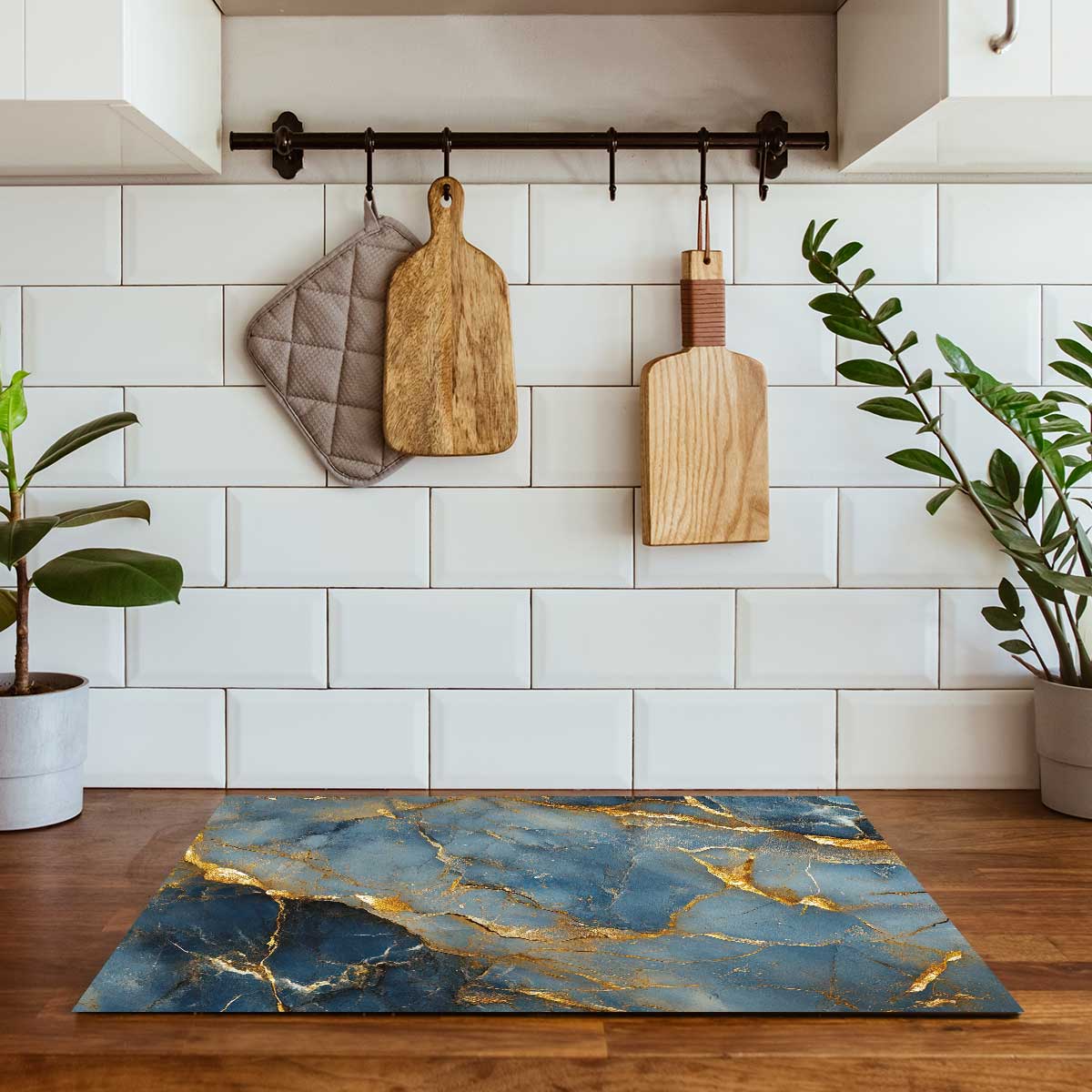 Inductie beschermer - Marmer Blauw-Goud