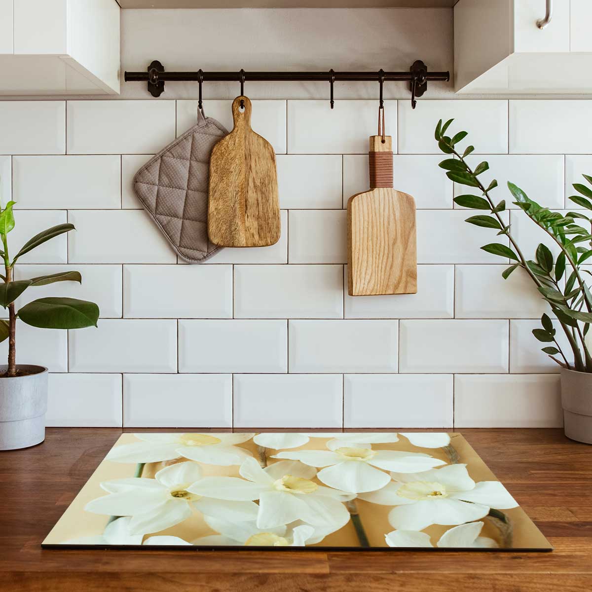 De inductiebeschermer kan ook gebruikt worden als decoratief werkblad, serveeroppervlak of fotobasis voor accessoires.