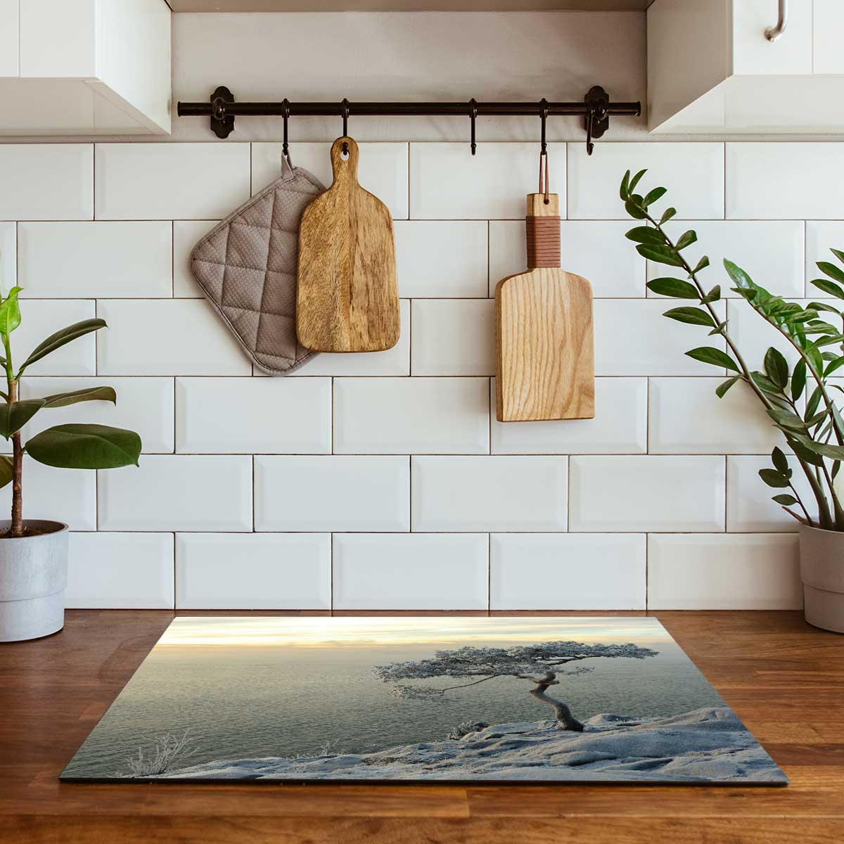 De inductiebeschermer kan ook gebruikt worden als decoratief werkblad, serveeroppervlak of fotobasis voor accessoires.