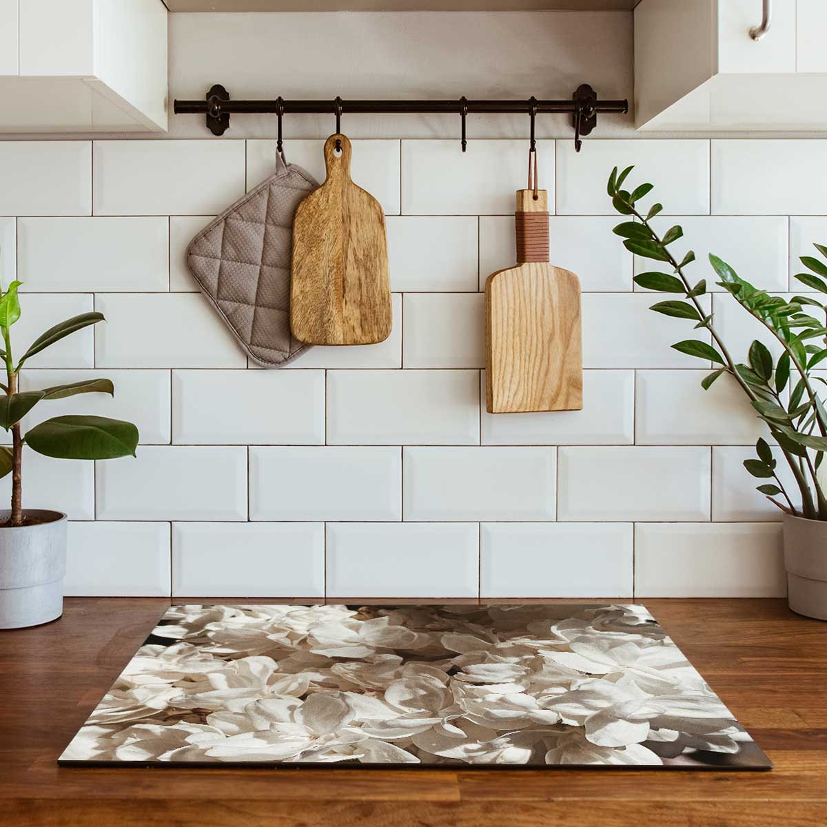 De inductiebeschermer kan ook gebruikt worden als decoratief werkblad, serveeroppervlak of fotobasis voor accessoires.