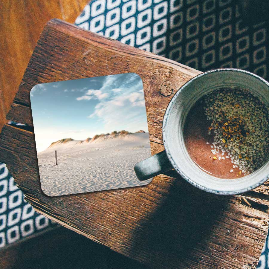 Ja, je kunt ze laten bedrukken met je eigen foto of logo.