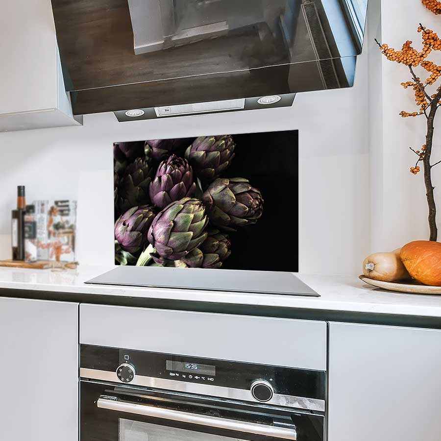 Praktisch en stijlvol: het spatscherm van Kookio beschermt je keukenmuur tegen vet, vocht en hitte.