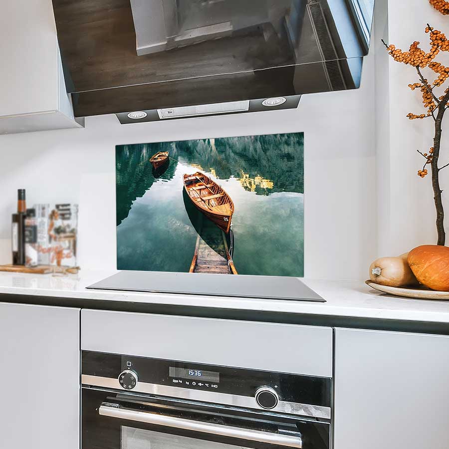 Praktisch en stijlvol: het spatscherm van Kookio beschermt je keukenmuur tegen vet, vocht en hitte.