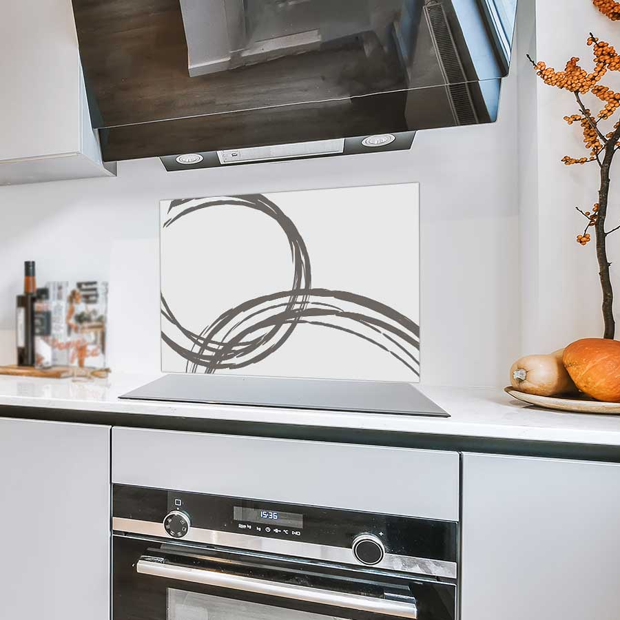 Praktisch en stijlvol: het spatscherm van Kookio beschermt je keukenmuur tegen vet, vocht en hitte.
