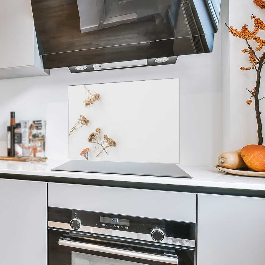 Praktisch en stijlvol: het spatscherm van Kookio beschermt je keukenmuur tegen vet, vocht en hitte.