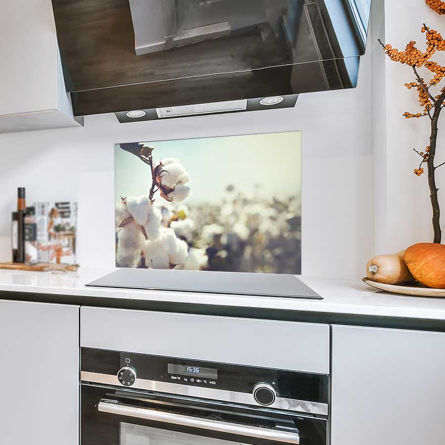 Praktisch en stijlvol: het spatscherm van Kookio beschermt je keukenmuur tegen vet, vocht en hitte.