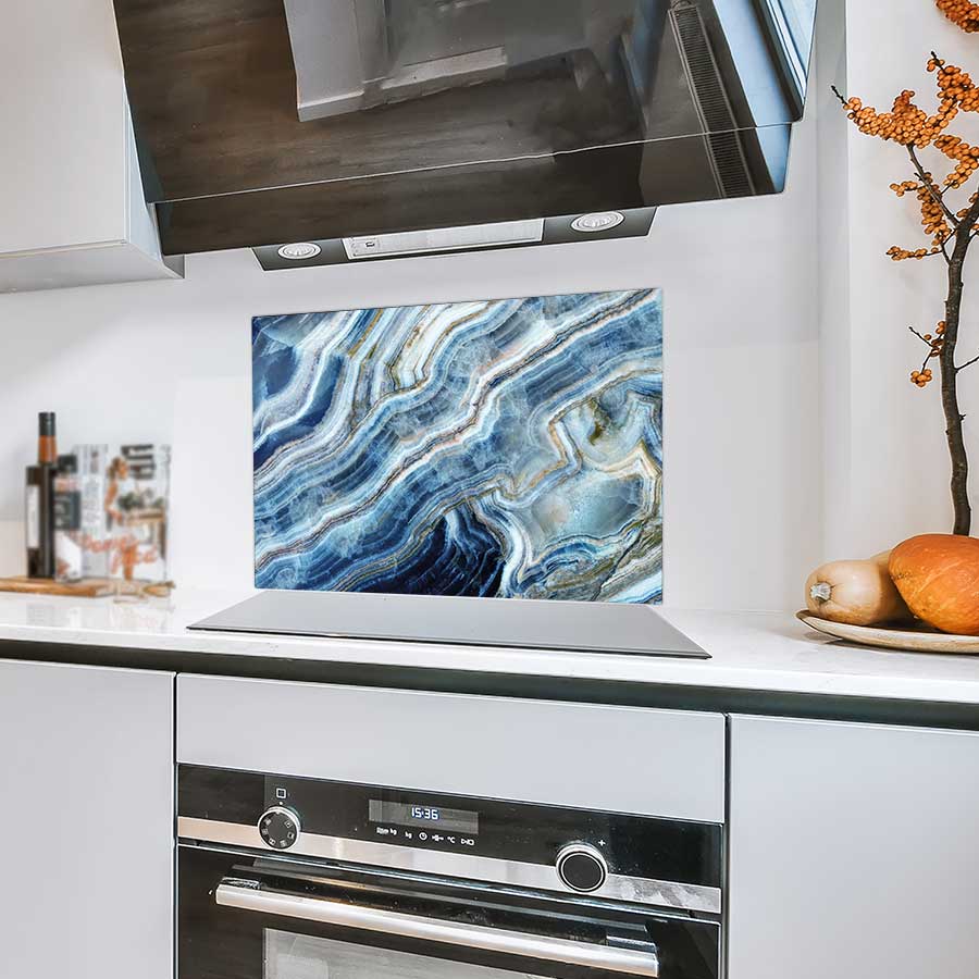 Praktisch en stijlvol: het spatscherm van Kookio beschermt je keukenmuur tegen vet, vocht en hitte.