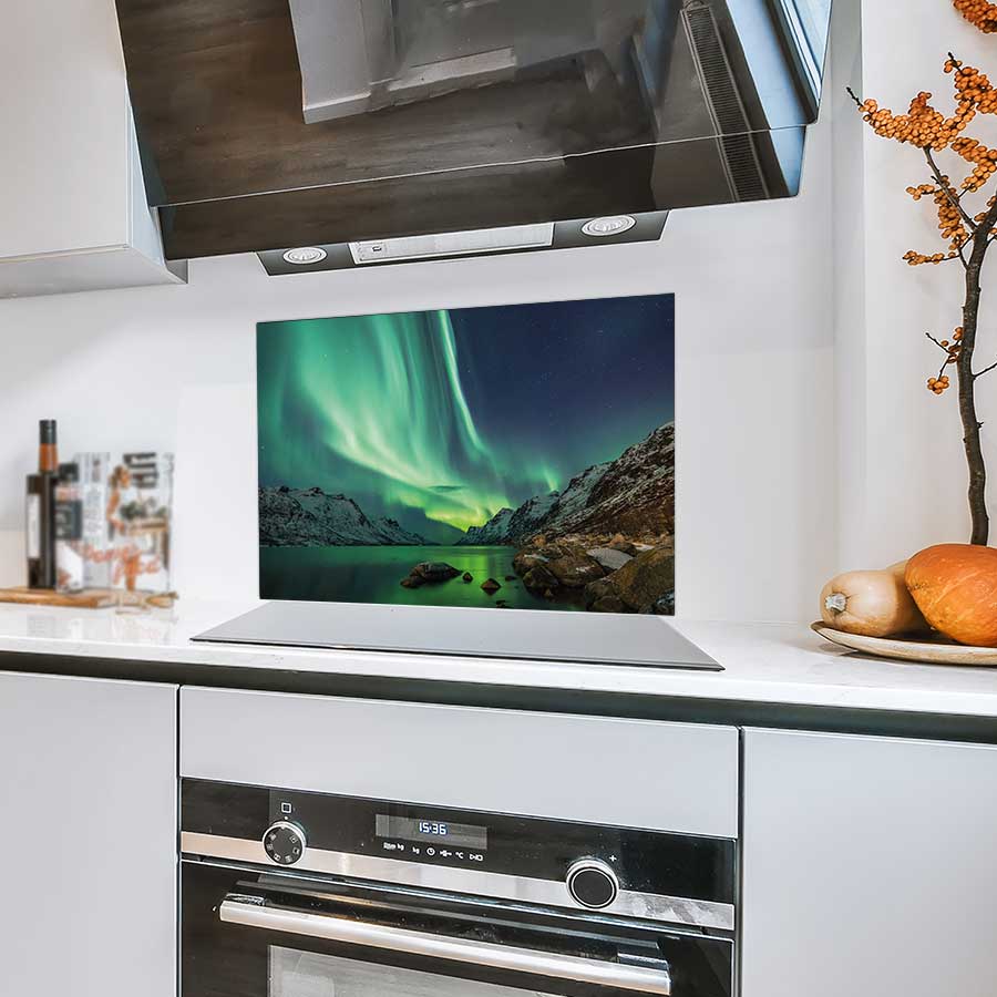 Praktisch en stijlvol: het spatscherm van Kookio beschermt je keukenmuur tegen vet, vocht en hitte.