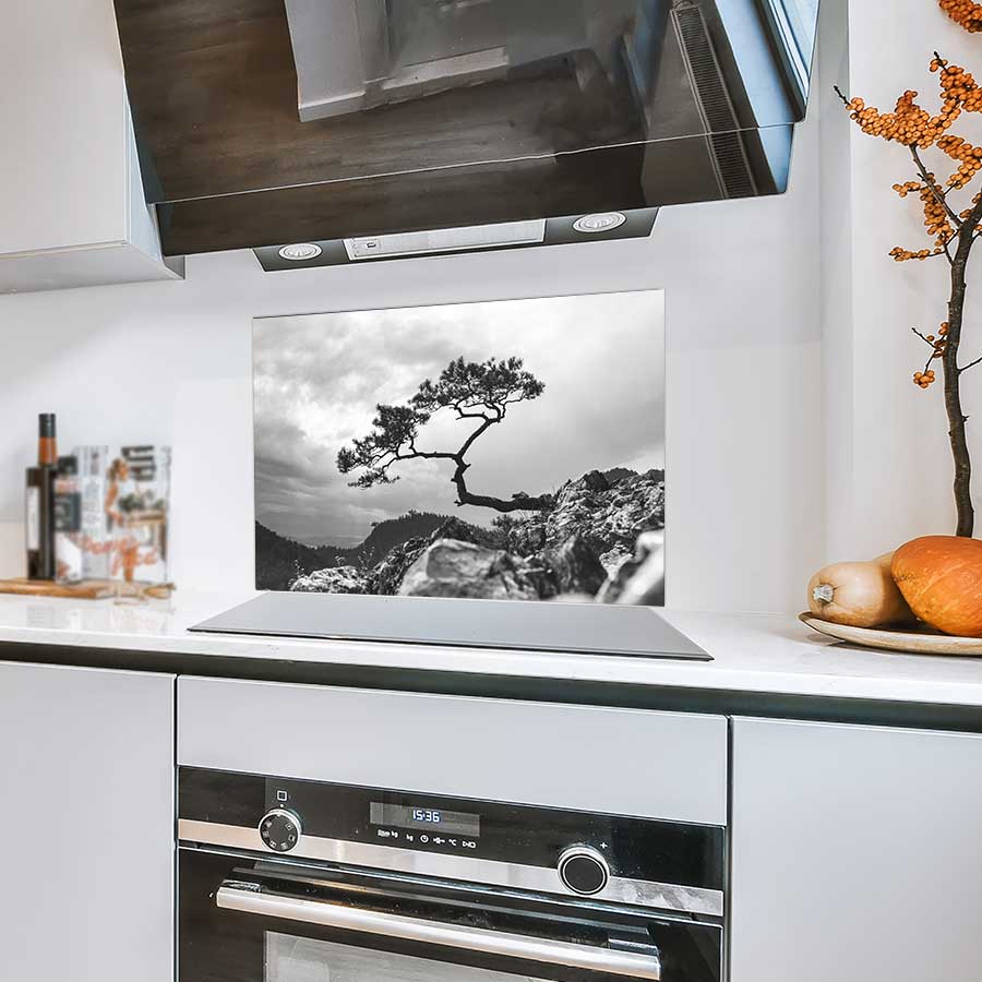 Praktisch en stijlvol: het spatscherm van Kookio beschermt je keukenmuur tegen vet, vocht en hitte.