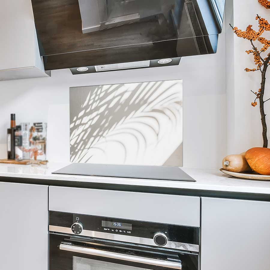 Praktisch en stijlvol: het spatscherm van Kookio beschermt je keukenmuur tegen vet, vocht en hitte.