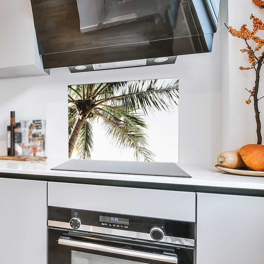 Praktisch en stijlvol: het spatscherm van Kookio beschermt je keukenmuur tegen vet, vocht en hitte.