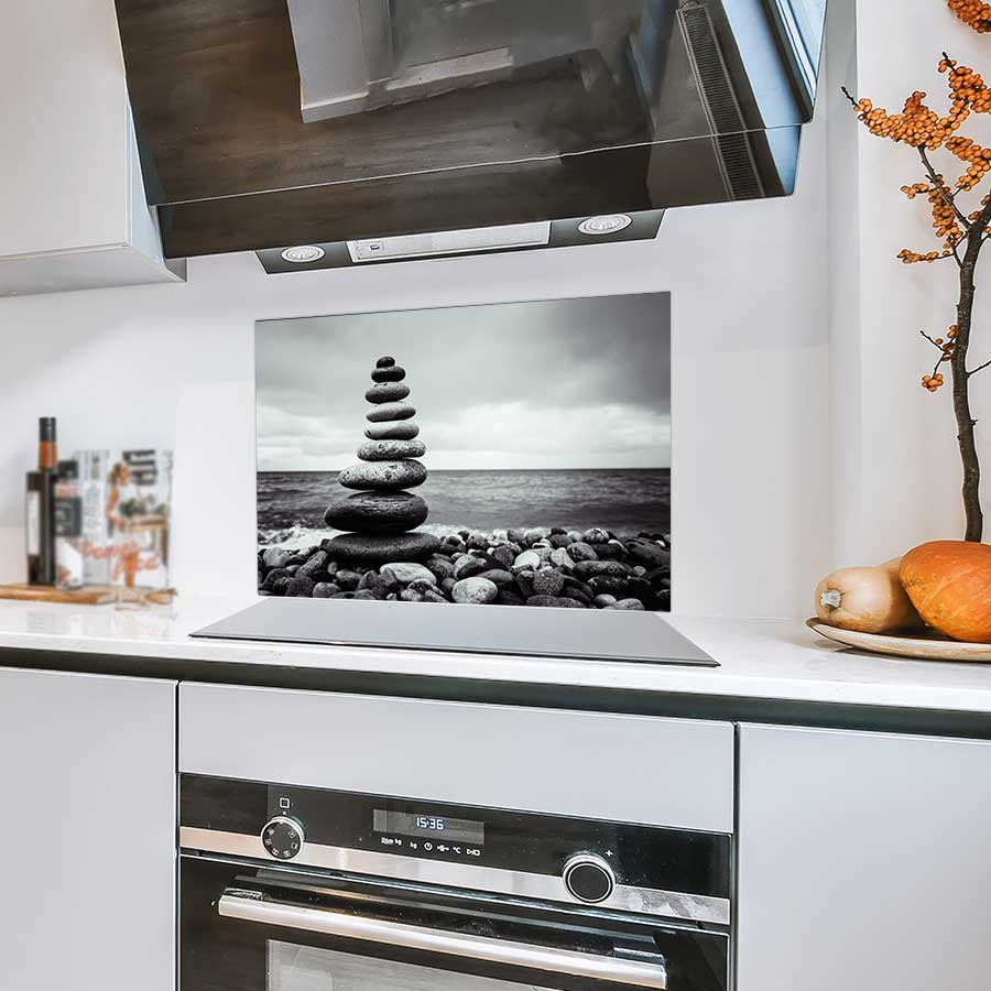 Praktisch en stijlvol: het spatscherm van Kookio beschermt je keukenmuur tegen vet, vocht en hitte.