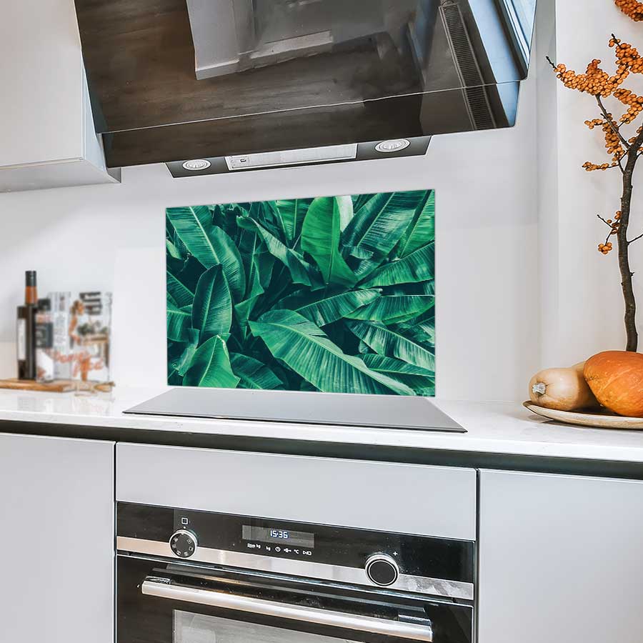 Praktisch en stijlvol: het spatscherm van Kookio beschermt je keukenmuur tegen vet, vocht en hitte.
