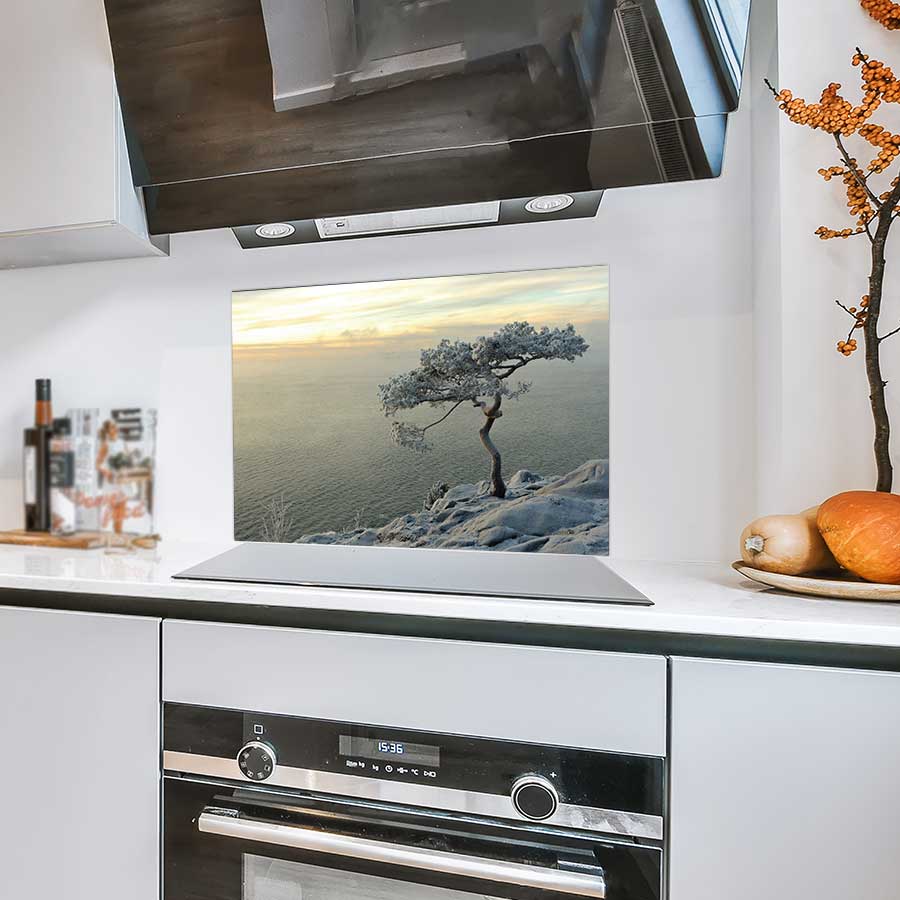 Praktisch en stijlvol: het spatscherm van Kookio beschermt je keukenmuur tegen vet, vocht en hitte.